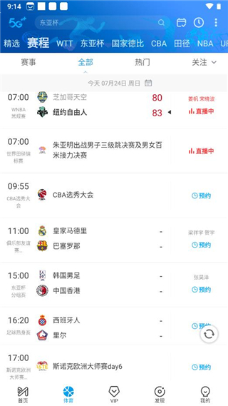 热门赛事热血出击:中超、五大联赛、NBA、CBA、UFC、乒乓球